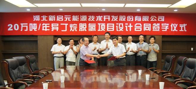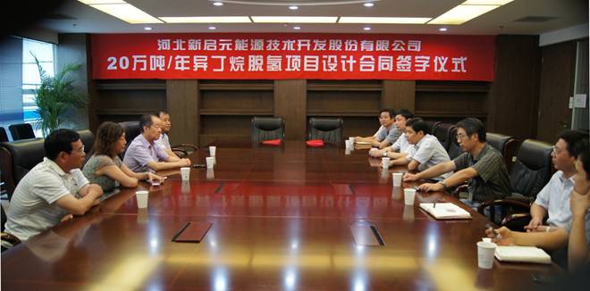 2013年8月23日,集團(tuán)董事長王振華、新啟元董事長李志剛等公司高層領(lǐng)導(dǎo)在合肥市東華科技股份有限公司與吳院長、張副總等人分別代表雙方公司進(jìn)行了20萬噸/年異丁烷脫氫項目設(shè)計合同的簽字儀式。