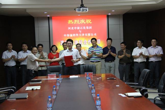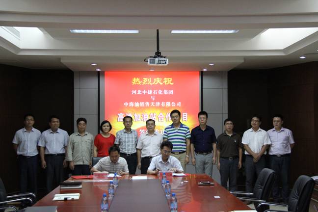 8月29日下午,在新啟元科研樓三樓會議室,河北中捷石化集團(tuán)與中海油銷售天津公司舉行高層洽談會暨沿海高速服務(wù)區(qū)加油站合作項目簽字儀式。會議由中捷石化集團(tuán)監(jiān)事會主席伊國東主持,中捷石化集團(tuán)常務(wù)副總經(jīng)理劉國新、中海油銷售天津公司總經(jīng)理馬國東出席并作講話。華辰石油公司總經(jīng)理馬強(qiáng)與中海油銷售天津公司副總經(jīng)理孫昊分別代表雙方在合作協(xié)議上簽字。