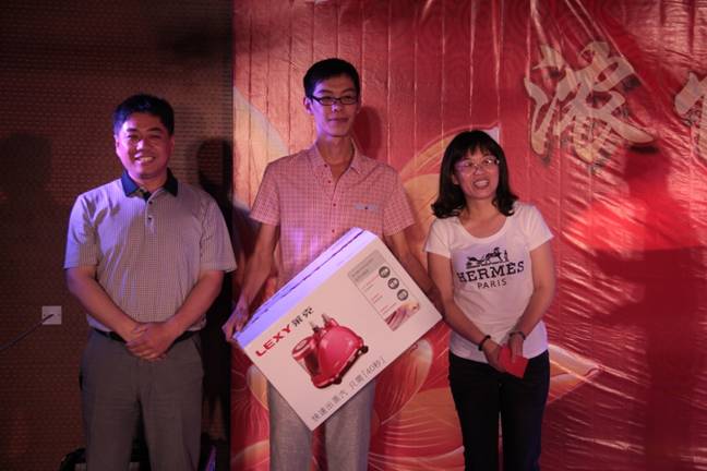 公司領導為幸運抽取一等獎的伙伴頒獎