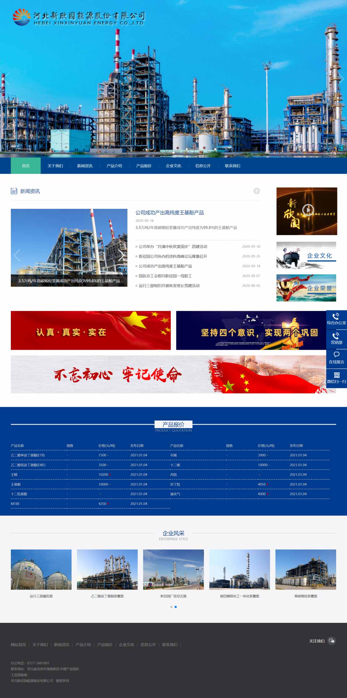 河北新欣園能源股份有限公司隸屬于河北中捷石化集團,占地面積960畝,年綜合加工能力36.5萬噸,是一家以石油化工、精細化工、能源技術(shù)研發(fā)為一體的大型綜合化工企業(yè)。公司建有28萬噸/年碳四精細化工一體化裝置、5萬噸/年乙二醇叔丁基醚裝置、3.5萬噸/年高碳烯烴裝置三套生產(chǎn)裝置,主要生產(chǎn)甲基叔丁基醚、ETB、DBE、壬烯、十二烯、壬基酚、十二烷基酚等產(chǎn)品。