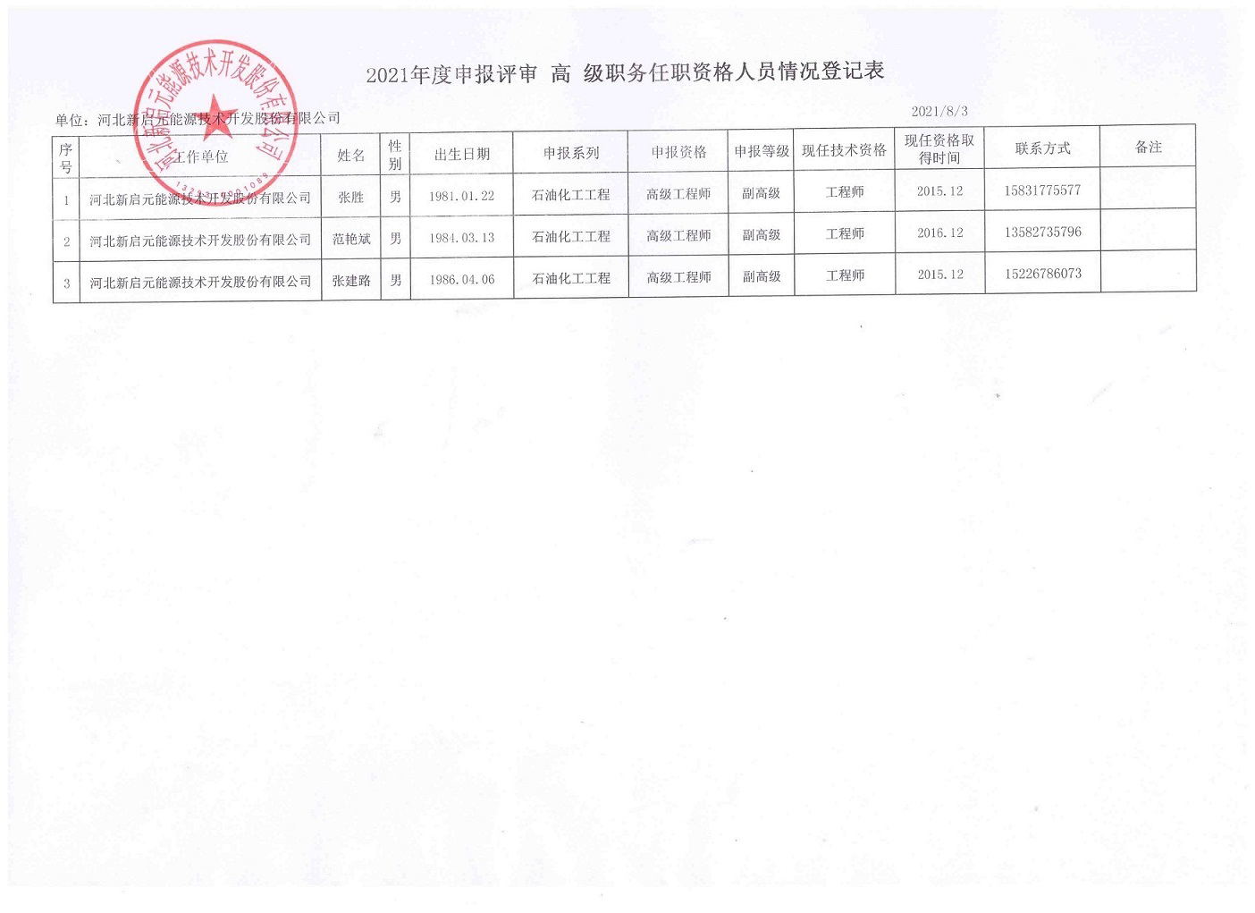 2021年新啟元申報(bào)高級(jí)職稱人員信息公示