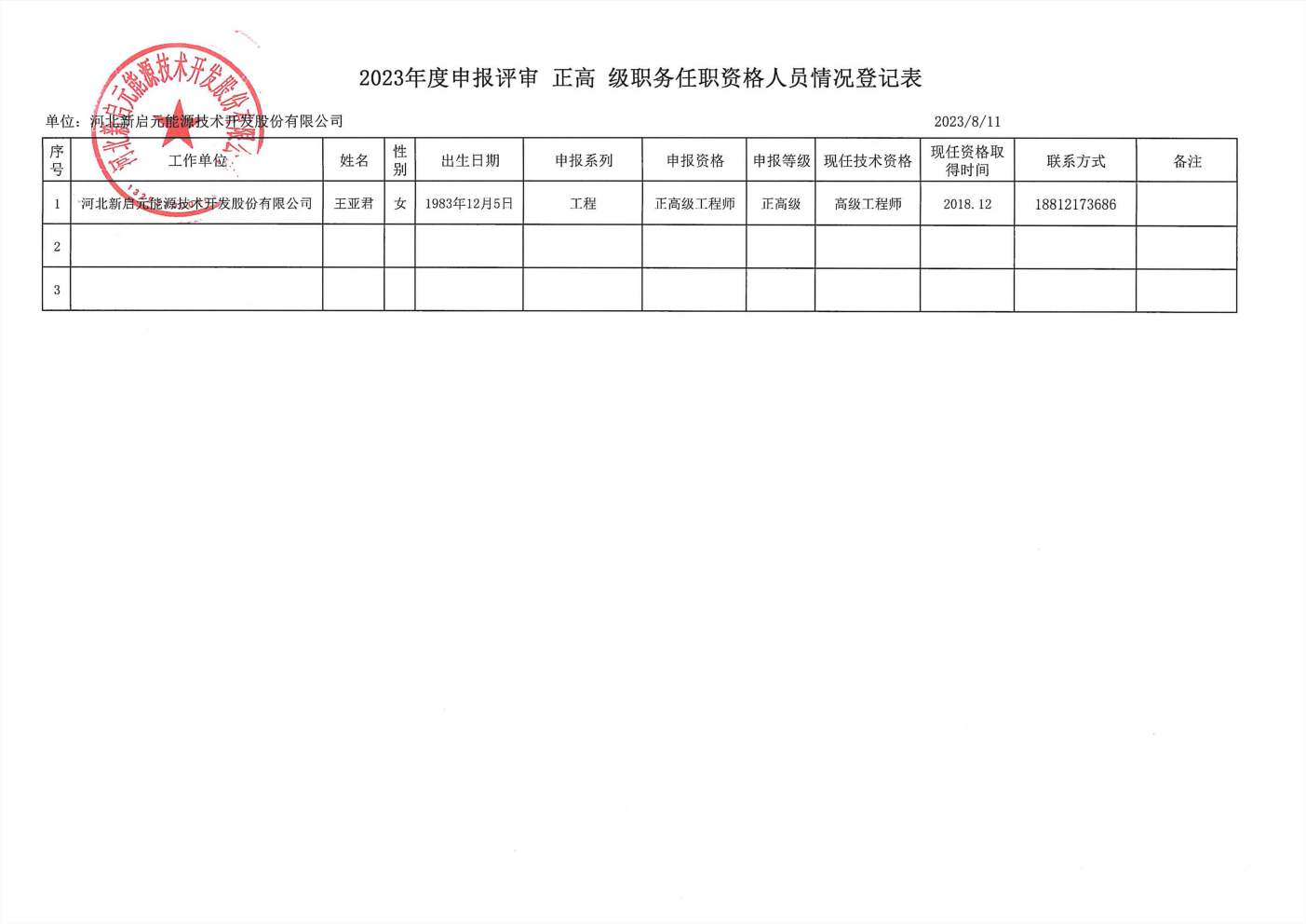 2023年河北新啟元申報(bào)高級(jí)職稱(chēng)人員信息公示