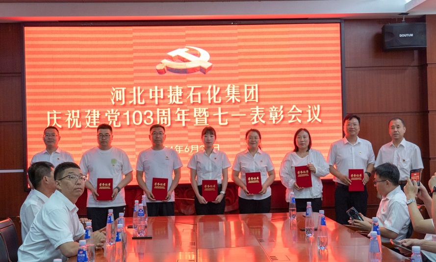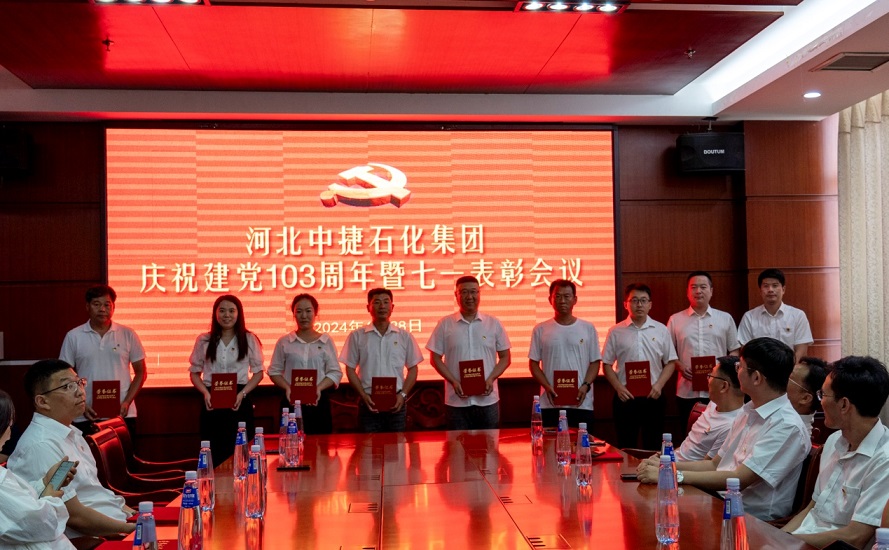 集團(tuán)公司訊  為隆重慶祝中國(guó)共產(chǎn)黨成立103周年,牢記革命歷史,緬懷老一輩無產(chǎn)階級(jí)革命家,提升黨組織的凝聚力、號(hào)召力和戰(zhàn)斗力,增強(qiáng)廣大黨員的光榮感、責(zé)任感和使命感,同時(shí)在表彰先進(jìn)中樹立典型,進(jìn)一步激勵(lì)基層黨組織和黨員充分發(fā)揮戰(zhàn)斗堡壘作用和先鋒模范作用,在中捷石化各項(xiàng)事業(yè)進(jìn)程中不斷貢獻(xiàn)新的更大力量,6月28日上午,河北中捷石化集團(tuán)黨委組織召開了慶“七一”建黨節(jié)活動(dòng)。集團(tuán)黨委書記于國(guó)臣同志,集團(tuán)黨委副書記、紀(jì)委書記朱振江同志,以及各所屬黨支部書記,2023—2024年度優(yōu)秀共產(chǎn)黨員、優(yōu)秀黨務(wù)工作者、先進(jìn)基層黨組織代表,黨務(wù)、工會(huì)工作者共計(jì)30余人參加了此次活動(dòng)。